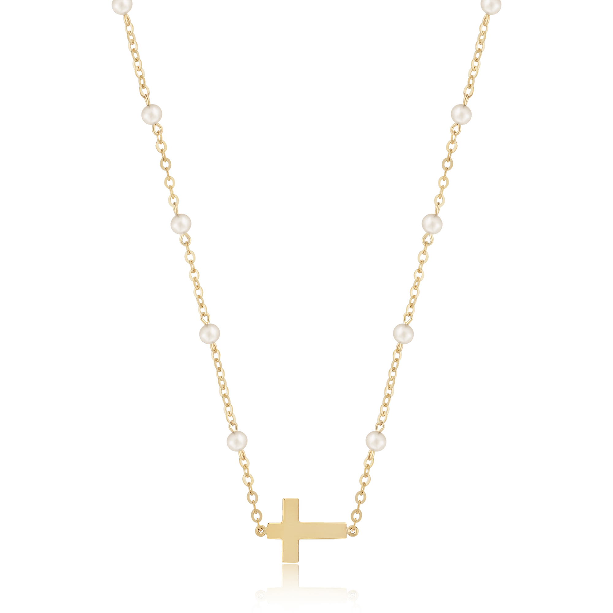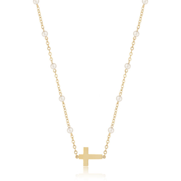 Style # 90259916FP | 14KY FWP BEAD NECK W/CROSS 16″ - Alloy/Metal: 14KY