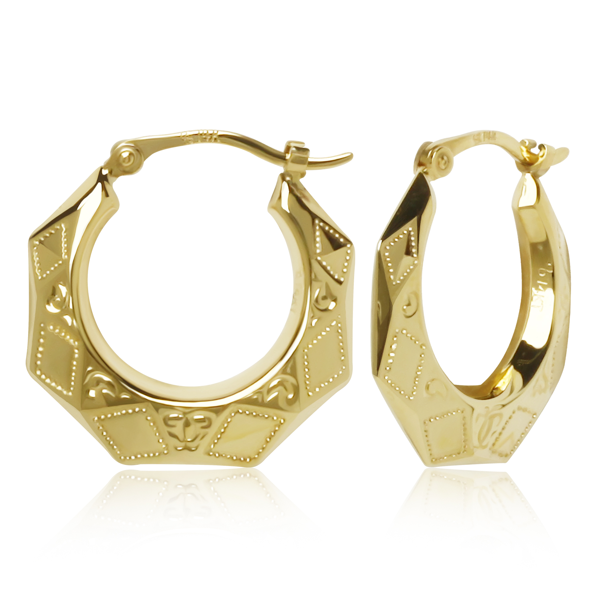 Style # 04/208 | 14KG FANCY DIA-CUT SHELL Medium Embossed Diamond Cut Hoops