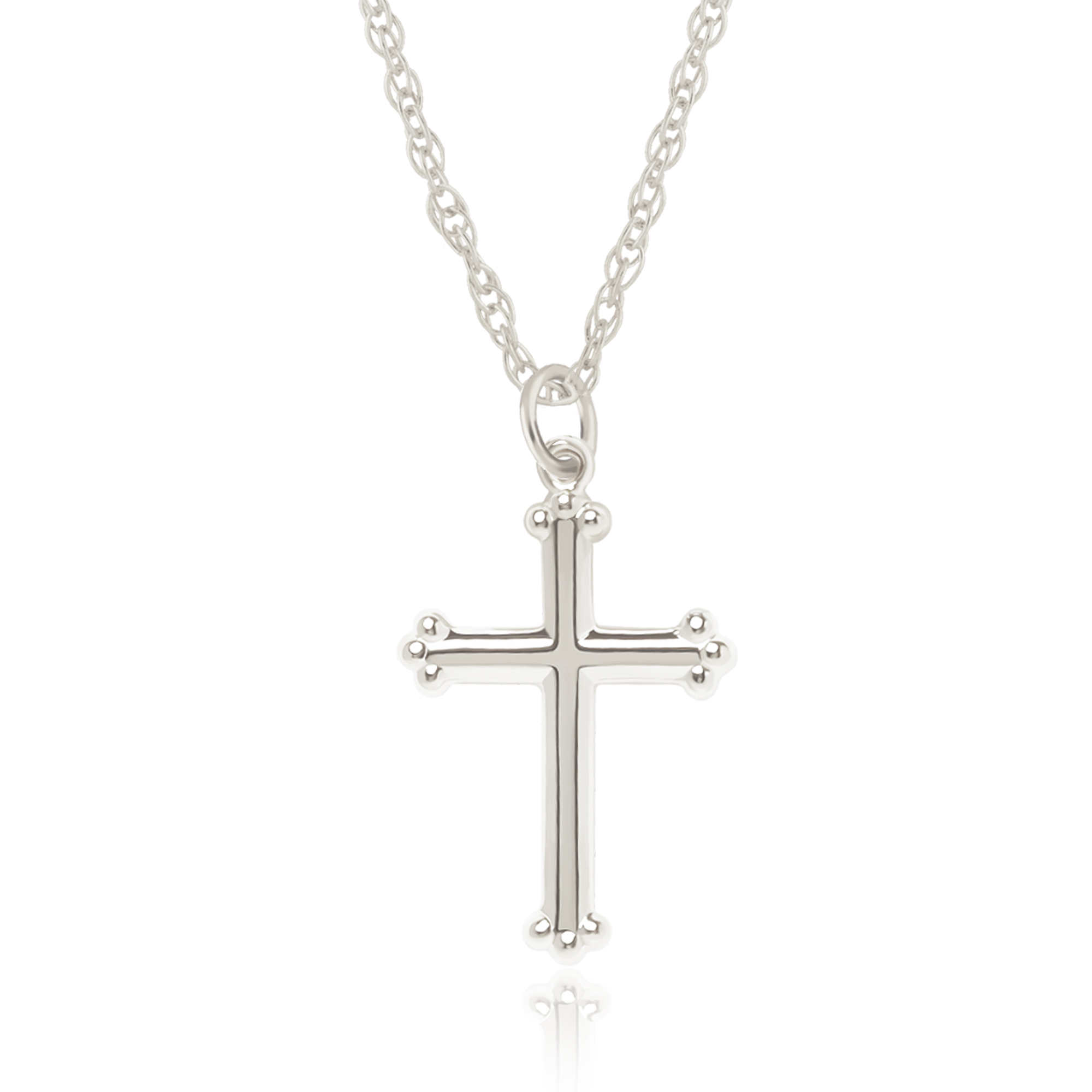 Style # 05/600W | 14KWG SM CROSS W/6R-18″ ROPE CHAIN Cross on 18′ Chain