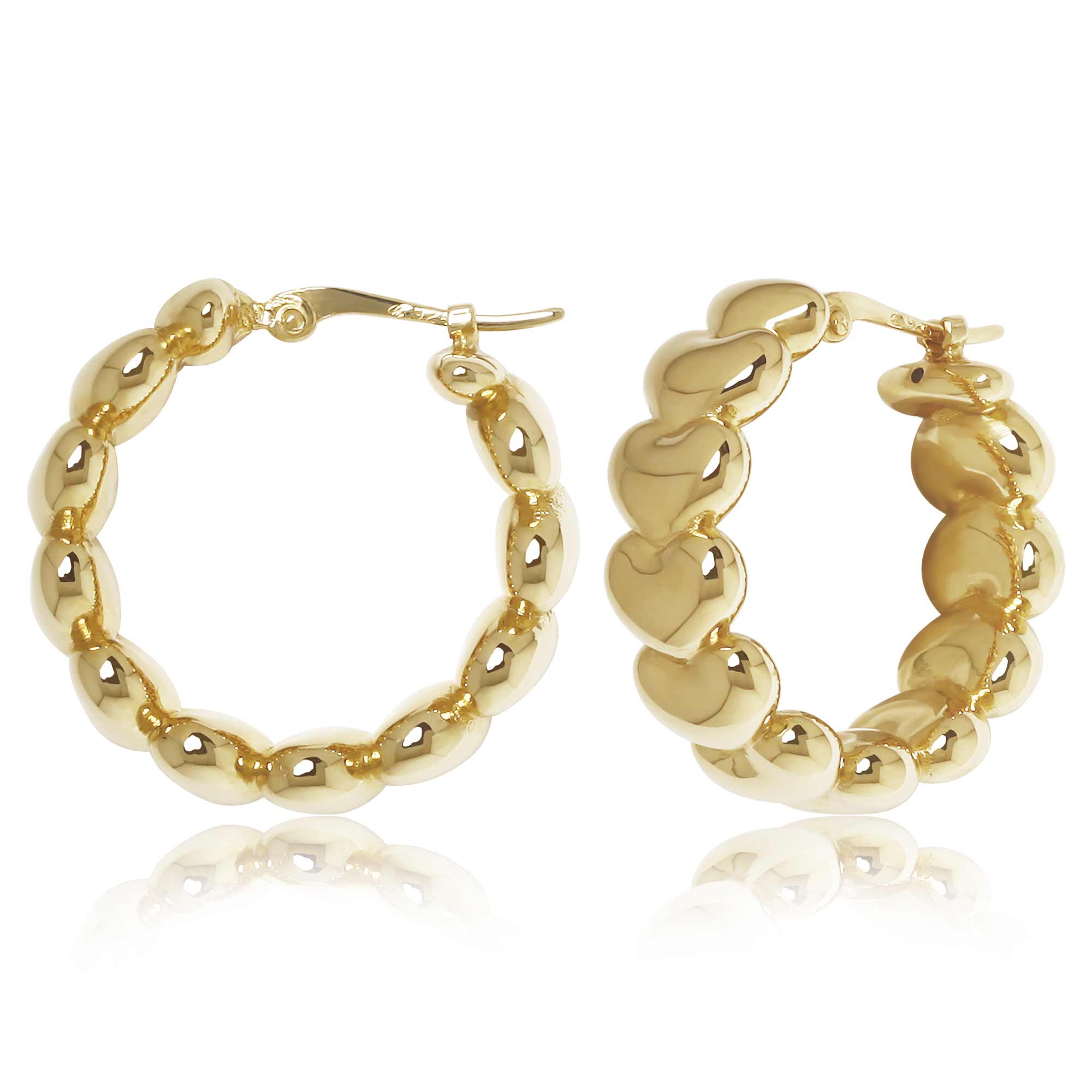 Style # 21/4278 | 14KG MULTI PUFFED HEART HOOP S/D - Alloy/Metal: 14KY
