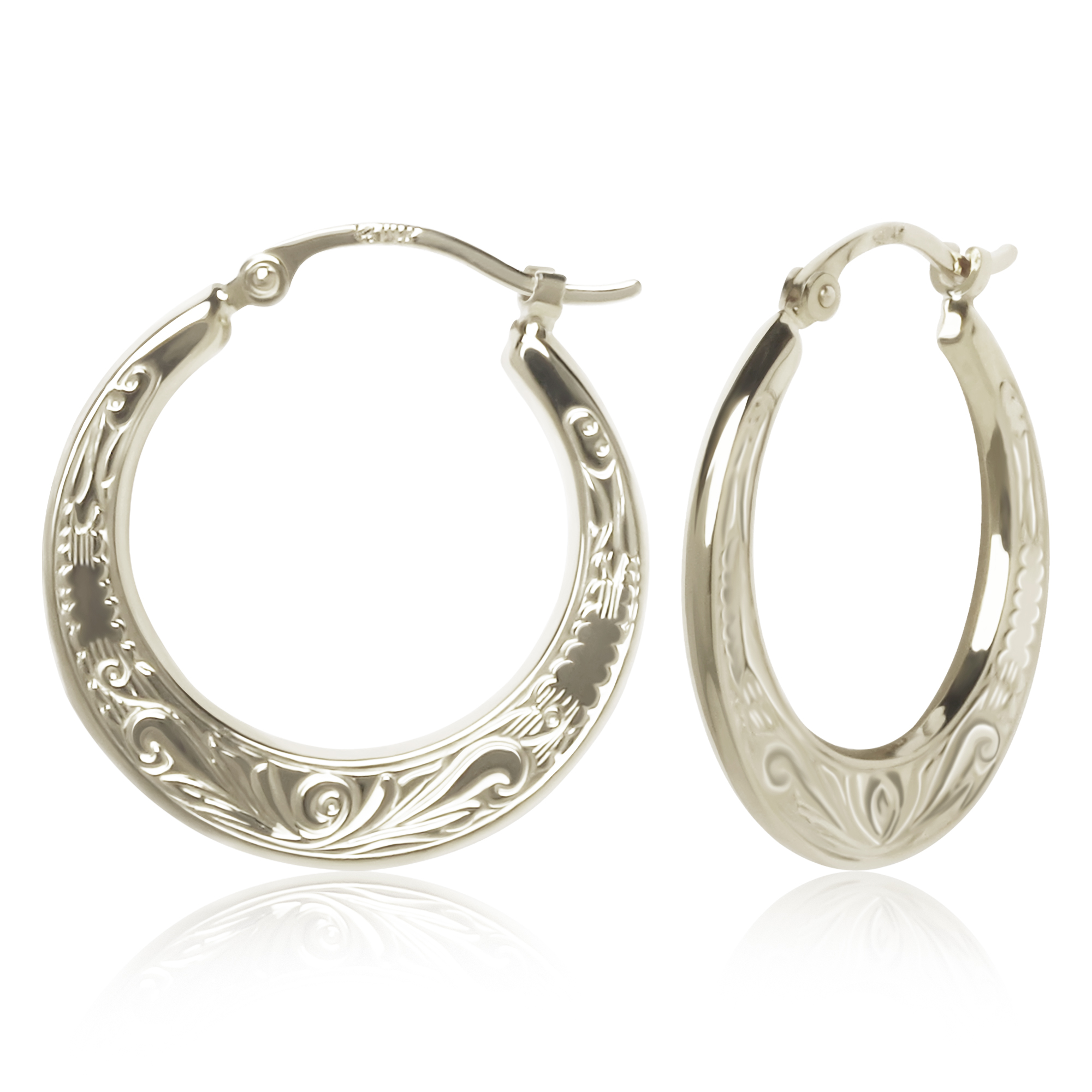 Style # 04/231W | 14KWG LG EMBOSSED HOOP Large Fancy Hoops