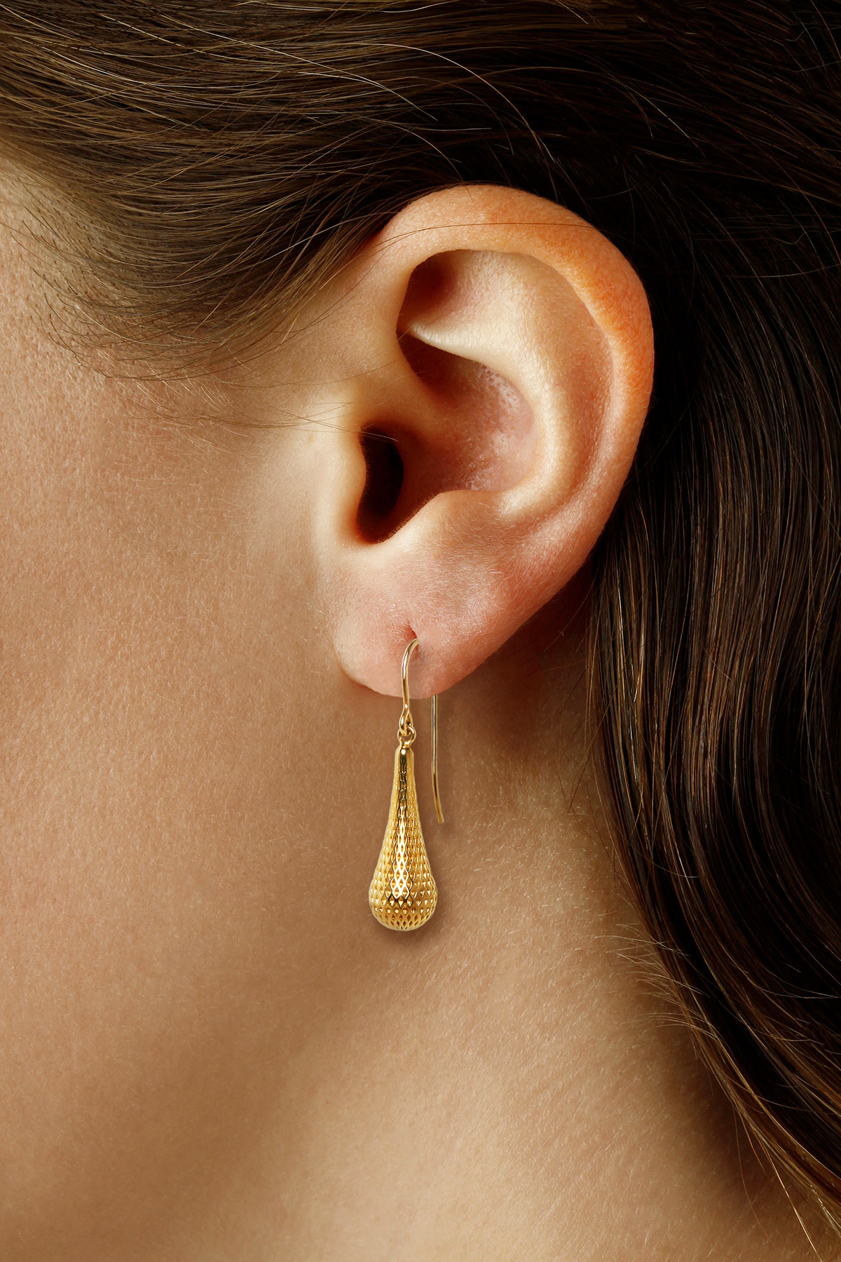 Style # 21/3418 | 14KG LONG TEXTURED DROP - Alloy/Metal: 14KY
